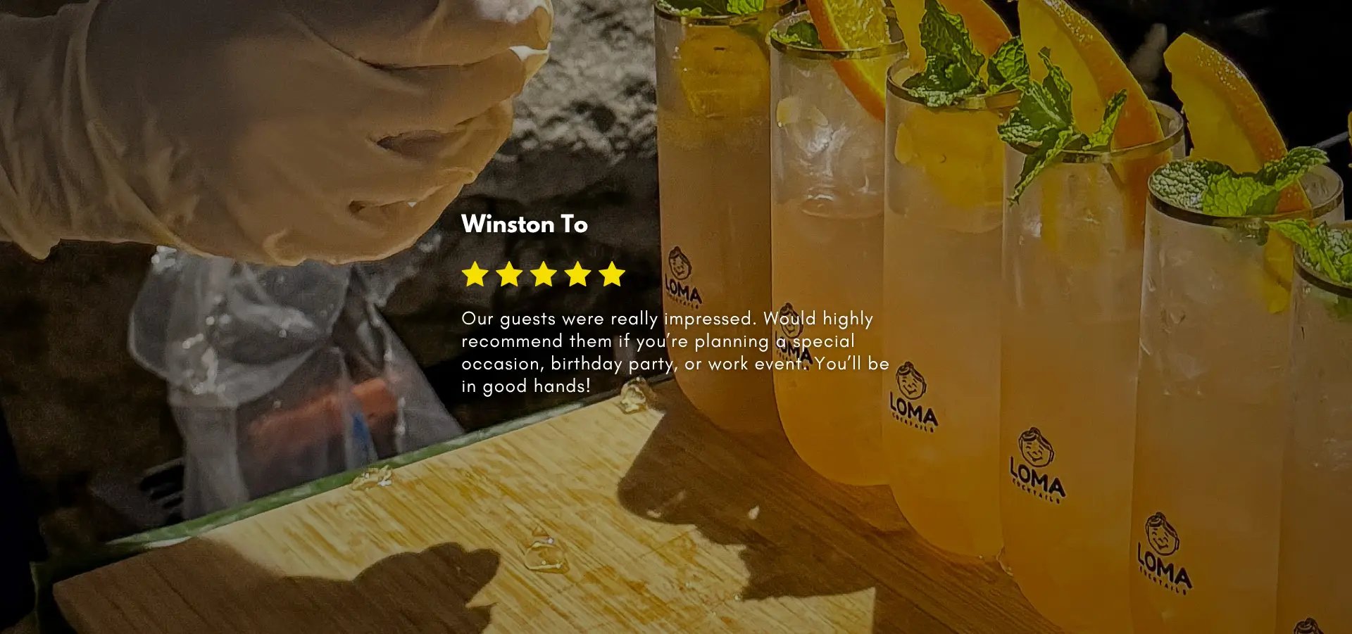 That commitment to fresh ingredient mixology is what separates a Loma bar from everything else your guests have experienced at an event.