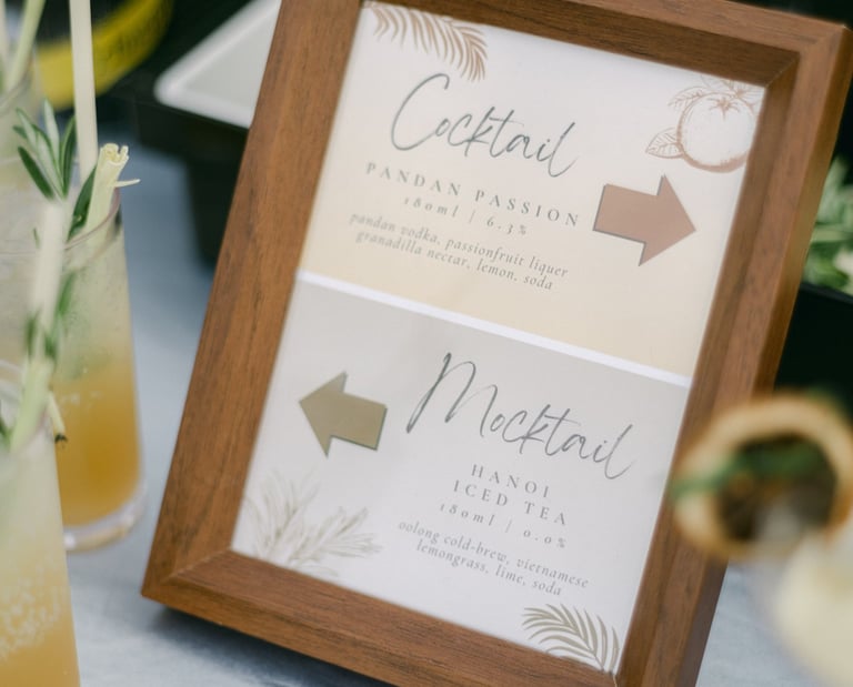 Non-alcoholic mocktail options matched to signature aesthetic